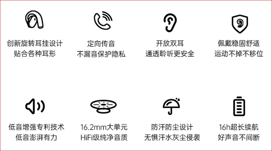 4) 自研转轴适配专利技术,贴合各种耳形,佩戴轻松舒适