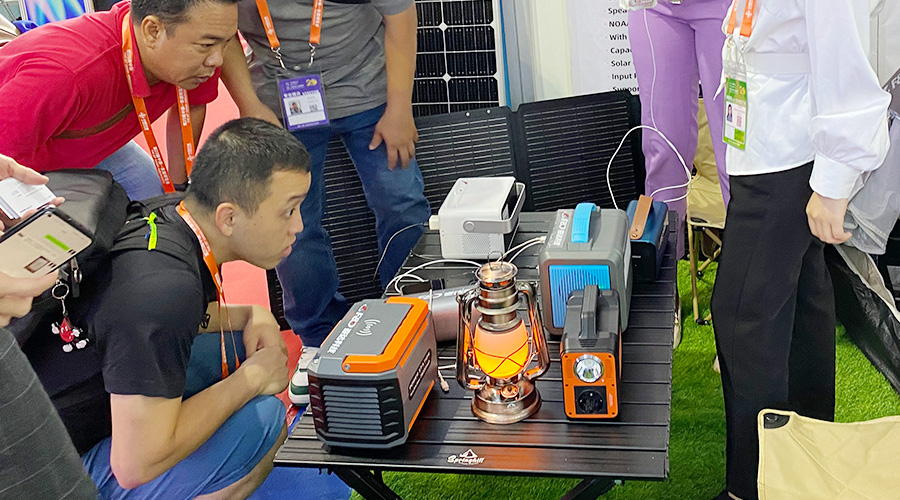 露营的时候想看电影?投影功能安排!想听音乐?AI智能音箱安排!担心电量不够?便携式光伏太阳能板安排!你和你的小伙伴们想同时充电?10台设备同时支持用电安排!这就是本届东博会上美高梅科技推出的重磅新品——AI便携式储能电源PH2380。