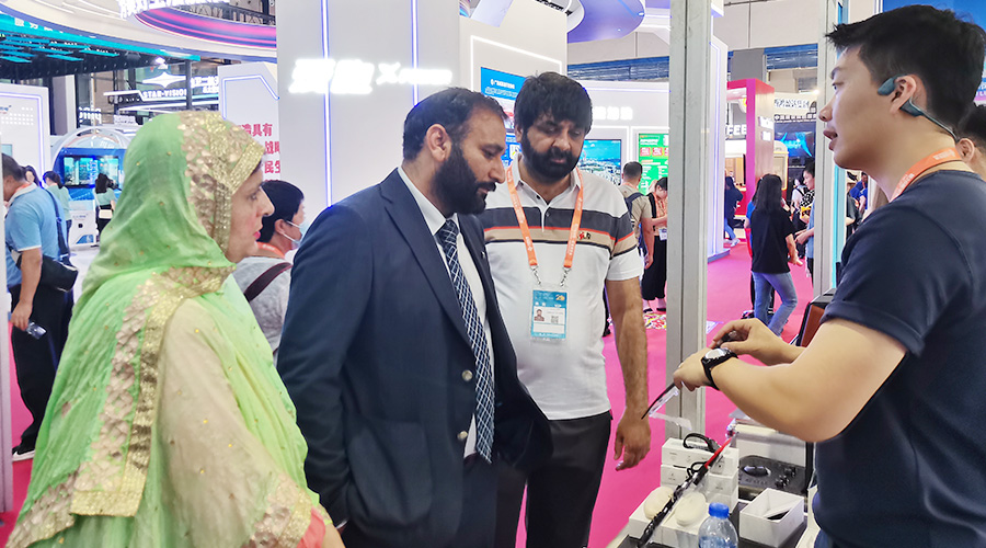 将投影、音箱、AI语音集合在一起的便携式储能电源PH2380在展会上可谓是独一份,该产品也作为本届东博会最具创意的代表性产品之一在深圳馆区综合展览区域展出,是展会上当仁不让的人气新品,吸引了不少领导、客户们前来体验和询问。期间,深圳市副市长张华女士特意来到美高梅科技展位上进行调研视察,除此之外,印尼公共气象服务中心负责人、缅甸政府代表团等领导都莅临美高梅科技的展位进行体验和参观。