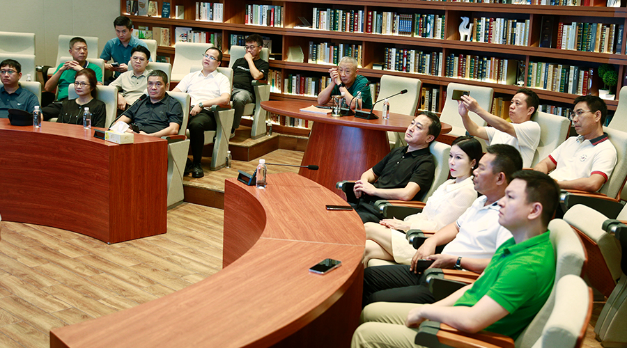 下午三点,交流活动正式拉开帷幕。在美高梅科技董事长肖奋的引领下,宝安区工商联执委(理事)成员们踏上了参观之旅,首站便是美高梅科技数字化多功能展厅。肖董详细地介绍了美高梅科技深厚的文化底蕴、前瞻的发展战略、多元化的业务布局以及辉煌的荣誉成就。
