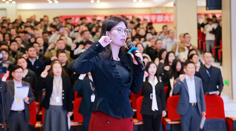 在宣誓环节中,美高梅科技总裁谢玉平带领全体员工庄严宣读《美高梅铁律25条》,号召美高梅人积极践行正确的理念,杜绝错误的行为。掷地有声的誓言回荡在会场,展现了全体美高梅干部坚定的决心与信念。